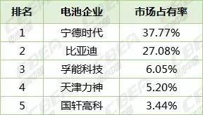 配套車型和裝機量仍有區(qū)別,中國化學(xué)與物理電源行業(yè)協(xié)會動力電池應(yīng)用分會統(tǒng)計數(shù)據(jù)顯示,2018年6月,寧德時代以1.08Gwh的裝機量位列第一,占6月總裝機量的37.77%;緊隨其后的比亞迪為0.78Gwh,占比27.08%;排名第三的孚能科技為0.17Gwh,占比6.05%;天津力神和國軒高科緊隨其后,分別占比5.20%和3.44%,前5家動力電池企業(yè)裝機量就占到了總裝機量的79.54%。從裝機量上來看,這種產(chǎn)業(yè)集聚效應(yīng)更為明顯,競爭也更為激烈和殘酷。