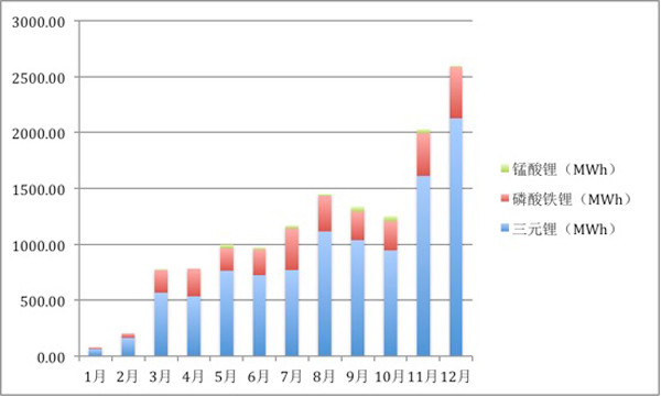 2017年新能源乘用車領域動力電池月度出貨量情況