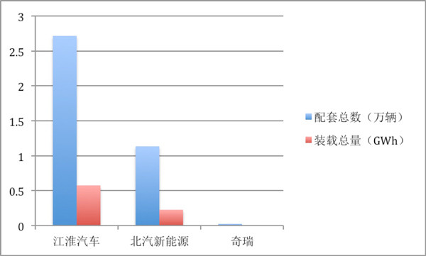 2017年,比克動力電池配套總數(shù)為3.44萬輛,江南汽車配套裝機數(shù)量最多為2萬輛;裝機總量為0.84GWh,江南汽車排名第一,裝機量達0.47GWh。