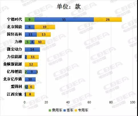在385款新能源車型中,磷酸鐵鋰電池配套201款、三元電池配套117款、錳酸鋰電池配套32款、燃料電池配套19款、鈦酸鋰電池配套6款、多元復(fù)合鋰電池配套3款、富鋰錳電池配套2款、磷酸鐵鋰和超級電容器同時配套1款、未注明類別鋰離子電池配套4款。