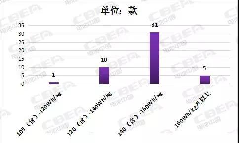 以下是各純電動車型電池系統(tǒng)能量密度分析詳情: