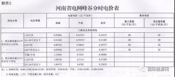 電價的調(diào)整、擴大峰谷電價差,給儲能留出發(fā)展空間,以河南“不滿1千伏”一般工商業(yè)用電的峰谷差價為例,峰時電價1.5094元,谷時電價0.38985元,峰谷電價差為1.11955元。