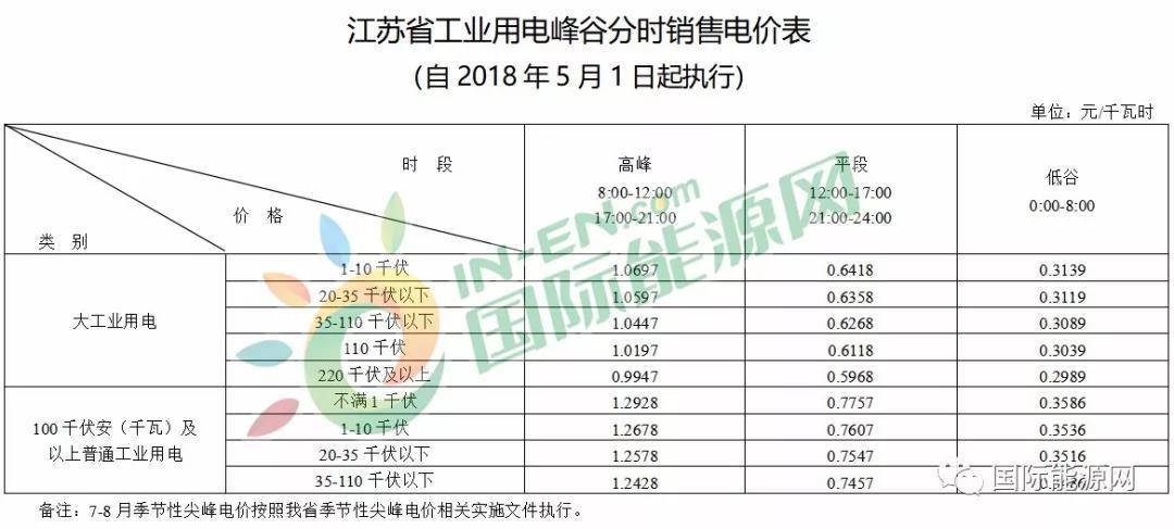 從“各省電網(wǎng)一般工商業(yè)用電峰谷分時電價表”中可以看出,江蘇省降價后的一般工商業(yè)用電的峰谷電價差均超過0.7元,分別為0.9342元(不滿1千伏)、0.9142元(1-10千伏)、0.8942元(35千伏及以上)。