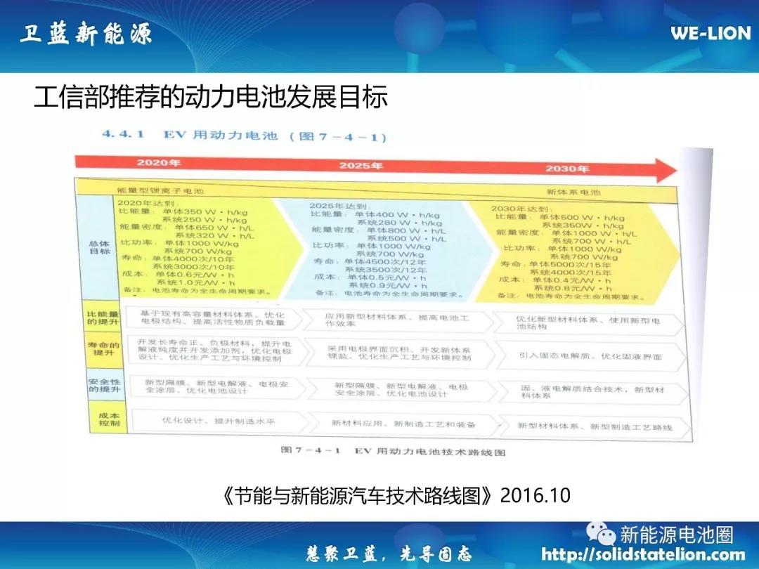 中國儲能網(wǎng)訊:按照我國《節(jié)能與新能源汽車技術(shù)路線圖》,到2020年,純電動汽車動力電池的能量密度目標(biāo)為300Wh/kg,2025 年目標(biāo)為 400Wh/kg,2030年目標(biāo)為 500Wh/kg。