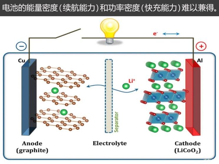 快充時,鋰離子需要加速瞬時嵌入到負(fù)極。這對負(fù)極快速接收鋰離子的能力挑戰(zhàn)很大。普通化學(xué)體系的電池在快充時負(fù)極會出現(xiàn)副產(chǎn)物,影響電芯的循環(huán)和穩(wěn)定性。能量密度與功率密度,在同一只電池中可以說是顧此失彼的兩個方向。