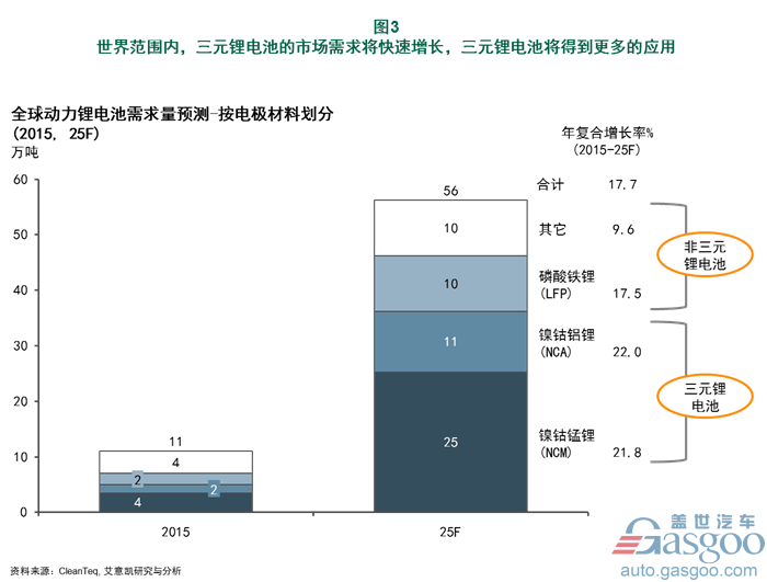 從技術(shù)路線分析出發(fā),三元鋰電池的市場(chǎng)需求將快速增長(zhǎng),出貨量也會(huì)迅猛提升。