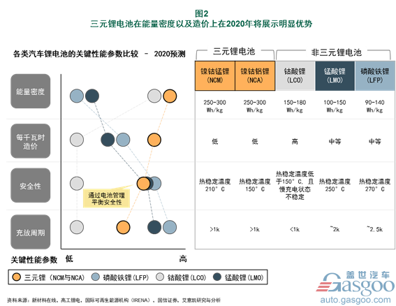 安全性與使用壽命:通過(guò)技術(shù)改進(jìn)(例如更穩(wěn)定的電池管理系統(tǒng)以及冷卻系統(tǒng)),三元鋰電池的安全性將得到提升,電池的循環(huán)壽命也將大幅提高,在2020年提高到的1200次/接近15年的使用年限。