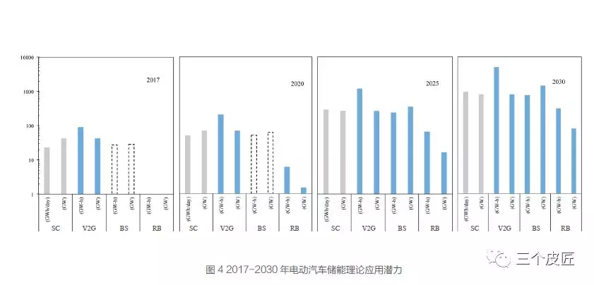 2.電動汽車儲能可顯著提升電力系統(tǒng)可再生能源消納能力電動汽車可通過有序充電、車電互聯(lián)、退役電池儲能等方式直接或間接參與電力系統(tǒng)運行,實現(xiàn)與儲能相同或相似的系統(tǒng)應(yīng)用價值??紤]到未來電動汽車的高市場滲透率,其2030年理論儲能規(guī)??蓾M足高比例可再生能源系統(tǒng)中小時級電力平衡,有效解決當(dāng)前困擾可再生能源發(fā)展的電力系統(tǒng)短期調(diào)峰能力不足的問題。