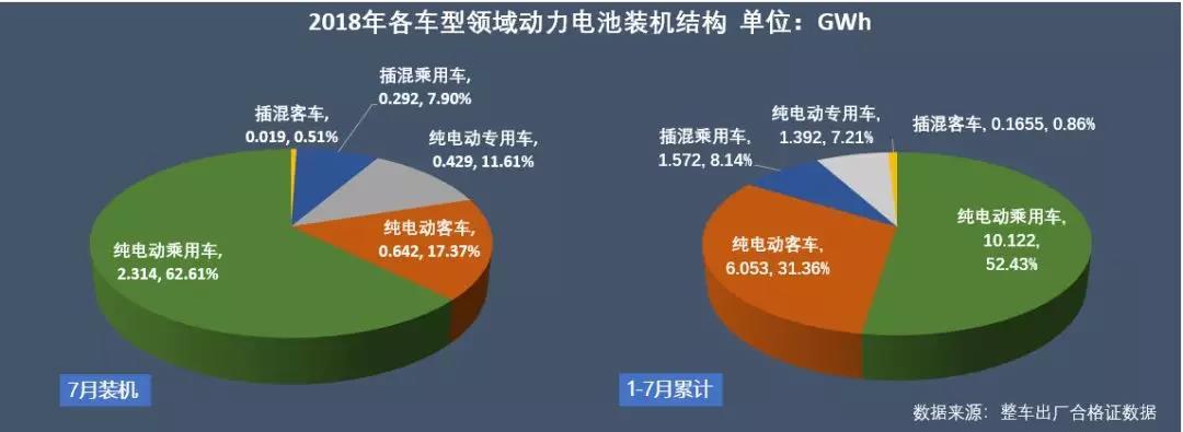 今年前7個(gè)月動(dòng)力電池累計(jì)裝機(jī)量19.32GWh,其中純電動(dòng)乘用車板塊電池裝機(jī)量10.12GWh,占年內(nèi)動(dòng)力電池累計(jì)裝機(jī)的52.43%;純電動(dòng)客車電池總裝機(jī)量6.053GWh,占年內(nèi)動(dòng)力電池累計(jì)裝機(jī)量的31.36%。