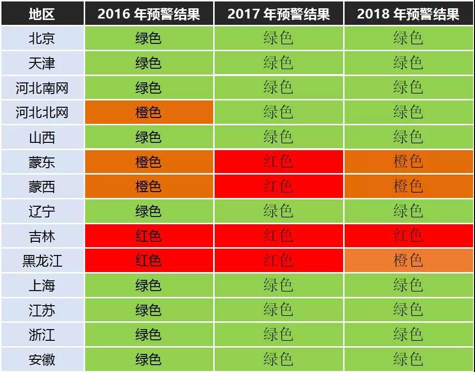 從2016-2018年三年的監(jiān)測結果看來,河北北網風電開發(fā)條件好轉,由橙色轉為綠色并連續(xù)兩年保持;蒙東、蒙西由橙色轉為紅色,表明上述兩地區(qū)風電投資條件轉差,但2018年轉為橙色,表明投資環(huán)境有所好轉;而吉林、甘肅等地區(qū)連續(xù)三年作為紅色預警地區(qū),即在暫停核準的情況下這些地區(qū)風電開發(fā)條件仍沒得到明顯改善。此外,黑龍江風電開發(fā)條件有所好轉,由紅色轉為橙色,寧夏則由紅色轉為綠色。