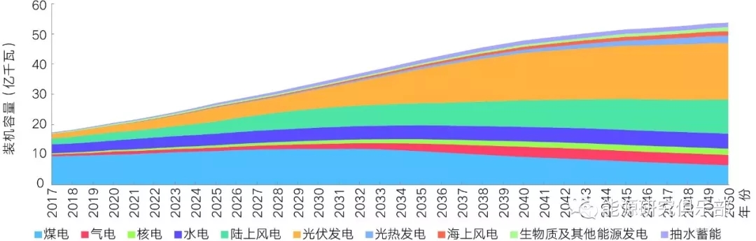 三是電源發(fā)展呈現(xiàn)“風光領(lǐng)跑、多源協(xié)調(diào)”態(tài)勢。陸上風電、光伏發(fā)電將是發(fā)展速度最快的電源,2030年、2050年兩者總裝機容量占比有望超過30%、50%。氣電受成本因素制約,增長空間有限,2030年、2050年的優(yōu)化裝機容量將分別達到1.8億千瓦、3.7億千瓦左右。核電發(fā)展受到站址與建設(shè)速度等因素影響,預計2030年、2050年的裝機容量將分別達到1.2億千瓦、2.2億千瓦左右。水電可開發(fā)潛力已相對有限,預計2030年、2050年裝機容量將分別達到4.6億千瓦、5.4億千瓦左右。煤電將逐步轉(zhuǎn)變?yōu)榫哂猩疃日{(diào)節(jié)能力的容量支撐電源,2030年、2050年裝機容量預計將達12億千瓦、7億千瓦左右。除風電、光伏發(fā)電外各類電源雖然裝機容量增長有限,但都將在電力系統(tǒng)中發(fā)揮重要作用,在波動性電源大規(guī)模發(fā)展的情況下保障電力系統(tǒng)的電力電量平衡與調(diào)峰靈活性,各類電源呈現(xiàn)協(xié)調(diào)發(fā)展態(tài)勢。
