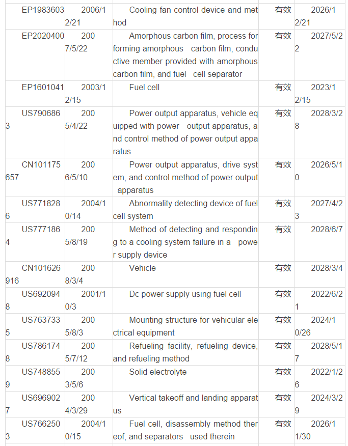 三、 豐田燃料電池相關(guān)專(zhuān)利分析
