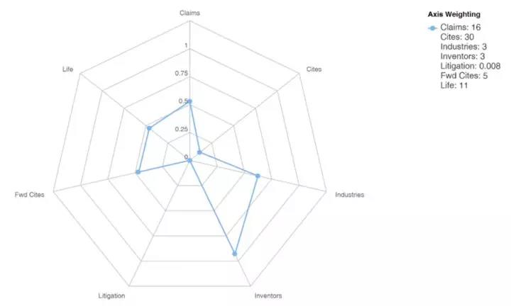 Innography專(zhuān)利強(qiáng)度指標(biāo)參考了10余個(gè)專(zhuān)利價(jià)值的相關(guān)指標(biāo),包括:專(zhuān)利權(quán)利要求數(shù)量、引用先前技術(shù)文獻(xiàn)數(shù)量、專(zhuān)利被引用次數(shù)、專(zhuān)利及專(zhuān)利申請(qǐng)案的家族、專(zhuān)利申請(qǐng)時(shí)程、專(zhuān)利年齡、專(zhuān)利訴訟等,如果一件專(zhuān)利強(qiáng)度越高,可以確定該專(zhuān)利的質(zhì)量和影響力越高。