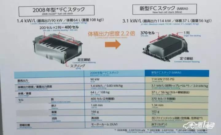 FCV價(jià)格高昂,主要是燃料電池堆的成本一直下不來(lái),然而豐田顯然找到了解決問(wèn)題的關(guān)鍵。和豐田在2008年推出的燃料電池系統(tǒng)相比,Mirai的燃料電池系統(tǒng)成本降低了95%!