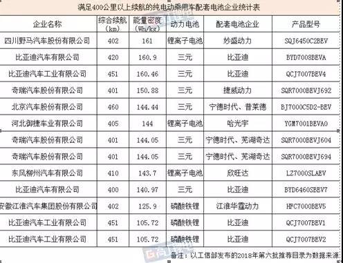 從能量密度來看,搭載妙盛動力鋰離子電池的一款四川野馬純電動多用途乘用車最高,達(dá)到161Wh/kg;北京汽車雖然只有一款車型超過400公里,但在上榜車型中續(xù)航卻最高,達(dá)到460公里,由寧德時代、普萊德分別提供動力電芯和PACK。