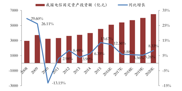 國內(nèi)電信固定資產(chǎn)投資額統(tǒng)計及預(yù)測
