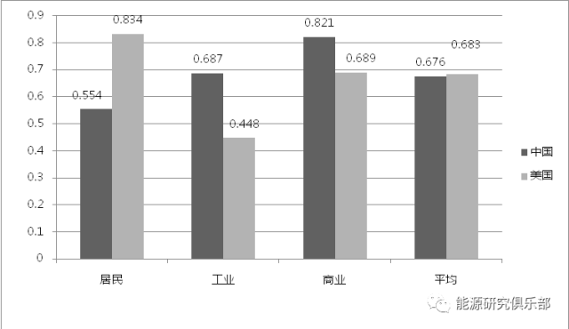 圖3 中、美分類(lèi)用戶電價(jià)比較(2016年)