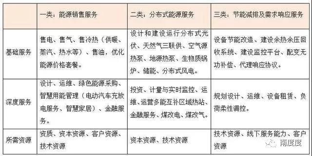 “能源服務(wù)”,根據(jù)《能源詞典》,是指通過能源的使用為消費(fèi)者提供的服務(wù)。按照專業(yè)關(guān)聯(lián)的緊密程度和業(yè)務(wù)發(fā)展模式的相似程度,能源服務(wù)可歸納為能源銷售服務(wù)、分布式能源服務(wù)、節(jié)能減排服務(wù)及需求響應(yīng)服務(wù)等三類。