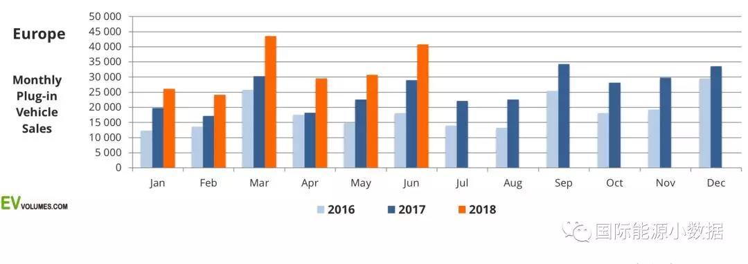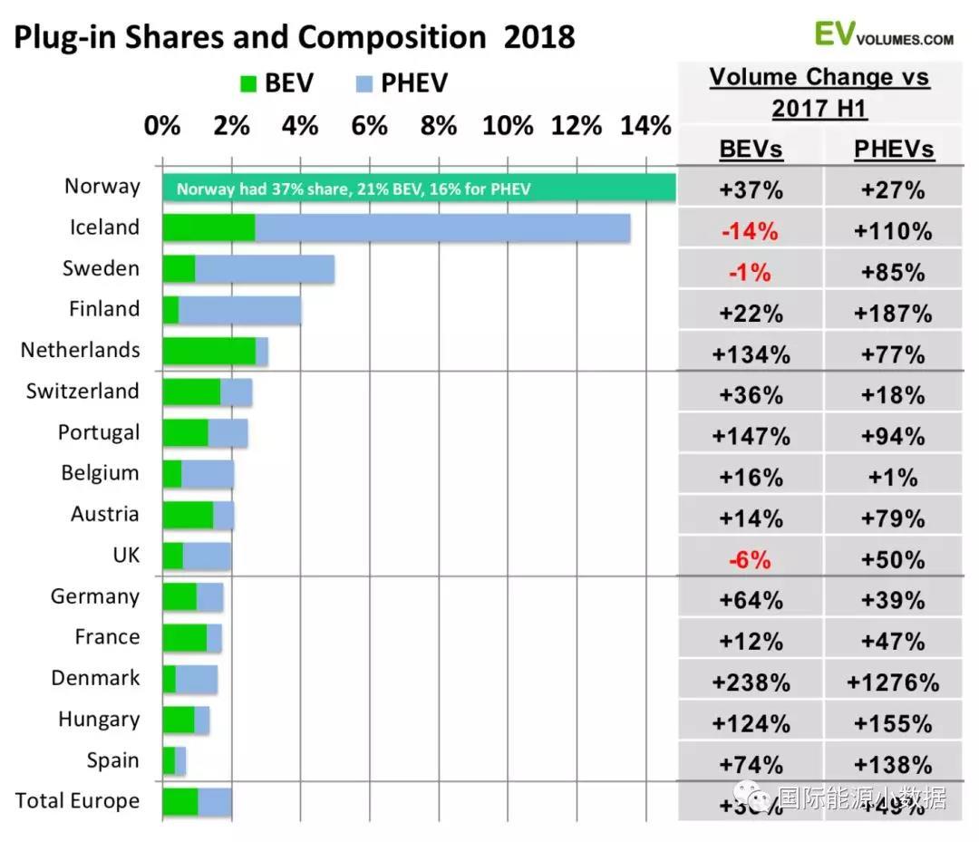 中國儲能網訊:根據EV-volumes.com匯總的數據,2018年上半年歐洲國家(歐盟、冰島、列支敦士登、挪威、瑞士)共售出19.5萬輛電動汽車(其中51%為全電動汽車、49%為插電混動汽車),比2017年上半年增長42%,占汽車市場份額為2%。相比之下,2018年上半年這些歐洲國家僅售出87輛燃料電池汽車(去年上半年售出66輛)。