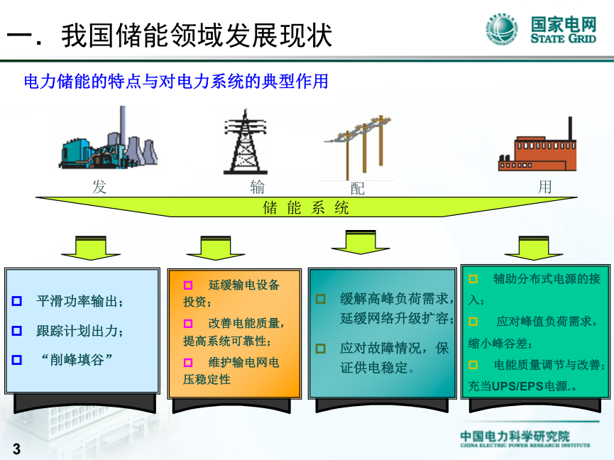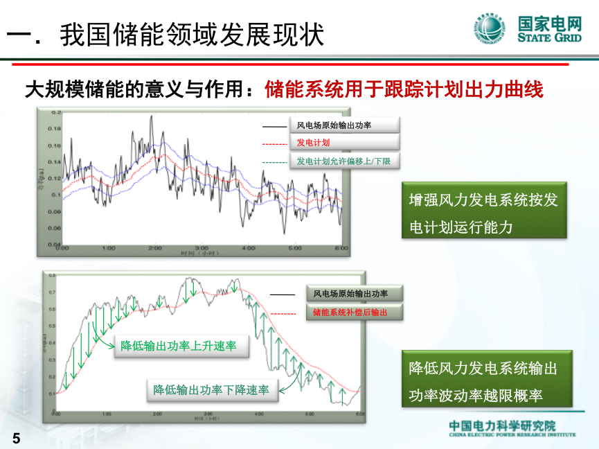 有兩項作用:第一是整個風光儲聯(lián)跟蹤和跟蹤出力的典型作用,要跟蹤那條線。第二個是平抑可再生能源發(fā)電速度的波動,通過幾年的示范下來以后,我們當時設(shè)計的幾大作用是可以滿足的,并且,這邊有一個知識點和大家分享一下,我們863項目里得出兩個重要的指標:一個是跟蹤計劃出力的精度,精度是做到了正負5%,就是整個聯(lián)合出力要跟蹤那條線是正負5%,平抑可再生能源波動有兩個指標,一個是每分鐘的波動率2%,每10分鐘的波動率是7%,這三個值作為硬性的要求,所有風電場或者光伏電站都能達到這些指標以后,對電網(wǎng)的接入是很友好的,因為技術(shù)的進步,證明了通過儲能和風電光伏配合,這些值都是能達到的,這是我們863定的指標,證明實際當中也是能實現(xiàn)的,假如可以實現(xiàn)這些指標,就可以大幅度的提升風電光伏的接納能力。
