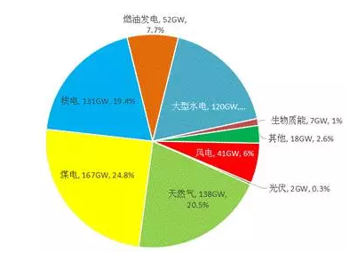 圖4 2016年歐盟各種電源裝機占比(GW、%)