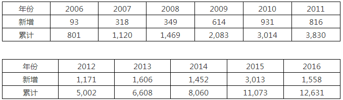 表3 2006-2016年歐洲新增和累計海上風(fēng)電機組容量統(tǒng)計(MW)