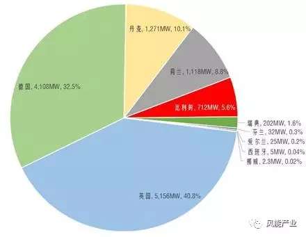 截止2016年底,歐洲海上風(fēng)電累計并網(wǎng)裝機12631MW,并網(wǎng)機組臺數(shù)3589臺,分別位于10個國家的81個海上風(fēng)電場。