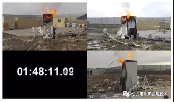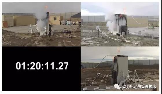 不管是內(nèi)部觸發(fā)還是外部觸發(fā),實(shí)驗(yàn)過(guò)程沒(méi)有外部直接去中斷或干預(yù)燃燒,這次實(shí)驗(yàn)為公共消防提供了一些數(shù)據(jù),如外部加熱約1h會(huì)達(dá)到可維持的熱失控條件,電池?zé)崾Э乇Wo(hù),火災(zāi)反應(yīng)及處理機(jī)制等,當(dāng)然還有一些燃燒氣體成分分析等等。