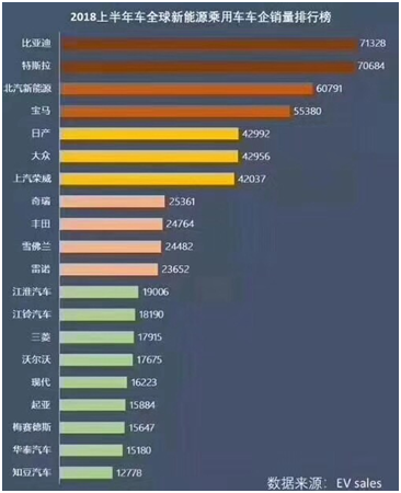 目前,自主車企在新能源車市明顯跑在跨國車企的前面。2018年上半年,世界新能源汽車銷量前十之中,有4個品牌是中國自主品牌。其中比亞迪在2018年上半年以71328輛的銷量擊敗特斯拉,成為全球銷量冠軍。而北汽新能源在2018年上半年以60791輛的銷量,次于特斯拉,擊敗寶馬,位列第三。此外,上汽榮威新能源與奇瑞則分別以42037輛、25361輛的銷量,分別位列2018年上半年全球新能源汽車銷量排行榜單的第7位與第8位。