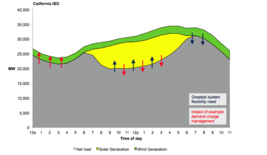 在這些例子中,非重合的需量電費加劇了整合太陽能發(fā)電的挑戰(zhàn)。建筑租戶希望通過減少日間中午的用電量來減少賬單。在太陽能發(fā)電高的地區(qū),這與電網(wǎng)的實際需要正好相反。