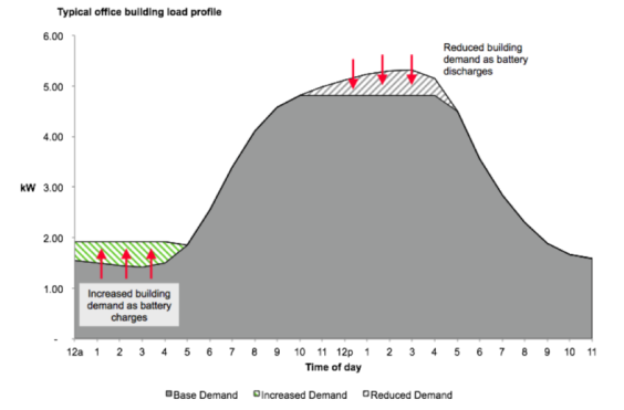 管理典型大型辦公樓的非重合需量電費意味著在清晨為電池充電,以減少電網(wǎng)消耗。