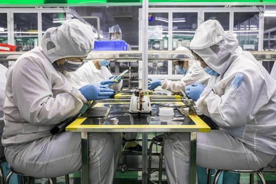 (圖示:中國湘潭。位于中國東部的大型鋰離子電池公司桑頓新能源生產(chǎn)線上的工人。目前使用的大多數(shù)電動汽車還沒有達(dá)到其循環(huán)周期的終點。2008年,特斯拉跑車(Tesla Roadster)首次在市場上亮相。這意味著第一代電動汽車電池還沒有進入回收階段。)