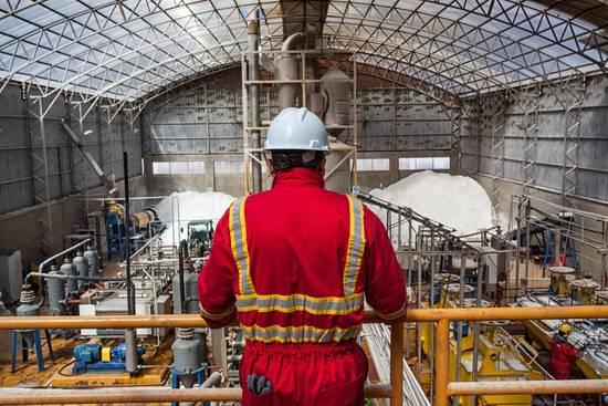 (圖示:玻利維亞的阿塔卡瑪高原。礦業(yè)公司Comibol的鉀礦開采負(fù)責(zé)人利諾·菲塔(Lino Fita)在視察他的工廠。該地區(qū)的鹵水富含鉀和鎂,這使得提取鋰變得更加困難和昂貴。鹽水會在蒸發(fā)池中放上好幾個月,蒸發(fā)掉多余的水分,把鹽分開。然后對剩余的化合物進行提純和處理。由于員工的匱乏,很少有鋰加工專家在工廠工作。在過去,只有三個人管理著工廠的整個生產(chǎn)線。)