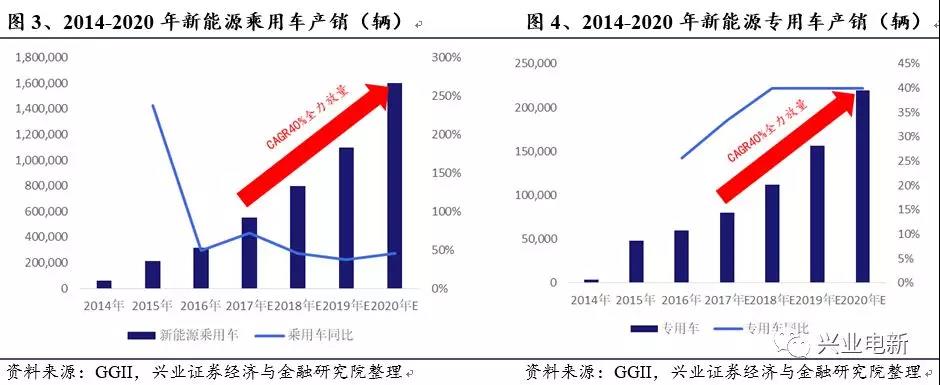 乘用車:A00級仍具有經(jīng)濟(jì)性主打短途代步,A級受益補(bǔ)貼持平或提升疊加牌照推廣,A00/A級雙賽道持續(xù)擴(kuò)展,中外合資布局加速,雙積分保障滲透率,2018-2020 銷量CAGR40%,主力拉動(dòng)新能源車放量。