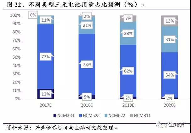 政策導(dǎo)向、市場需求促進(jìn)高鎳三元路線,成本及性能雙優(yōu)勢NCM523電芯將進(jìn)一步取代NCM333電芯,高鎳NCM622/811的應(yīng)用也將隨著上游正極的產(chǎn)能釋放與下游需求的上升而加速提升。