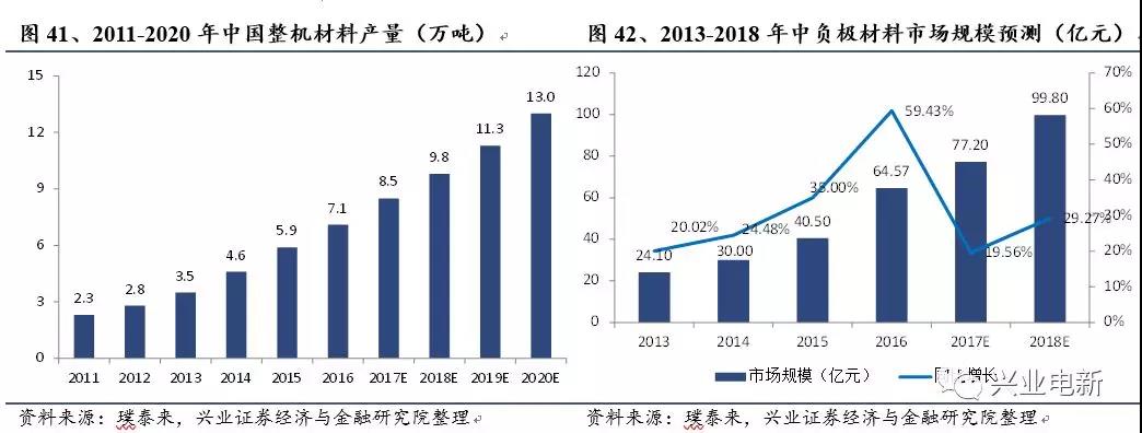 國內(nèi)負(fù)極材料市場規(guī)模從2013 年的24.10 億元增長至2016 年的64.57 億元,復(fù)合增長率達(dá)到38.89%,在新能源車市場的帶動(dòng)下全面提升,2018 年有望達(dá)到近百億元的市場規(guī)模。