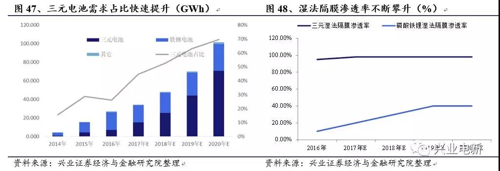 新能源車換檔自驅(qū),三元電池需求加速增長,2020年動(dòng)力鋰電濕法隔膜需求達(dá)15.6億平。