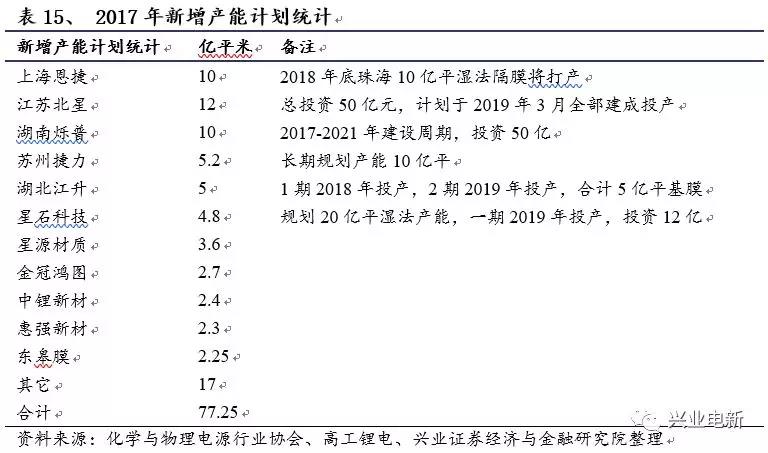 2017年隔膜擴(kuò)產(chǎn)加速明顯,行業(yè)進(jìn)入快速擴(kuò)張期。
