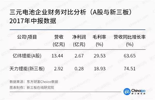 終端電池方面,A股上市公司億緯鋰能的表現(xiàn)明顯好于新三板企業(yè)天力鋰能。不過加入企業(yè)成長性與估值因素后,天力鋰能仍可關注。(新三板在線研究院/陳睿)