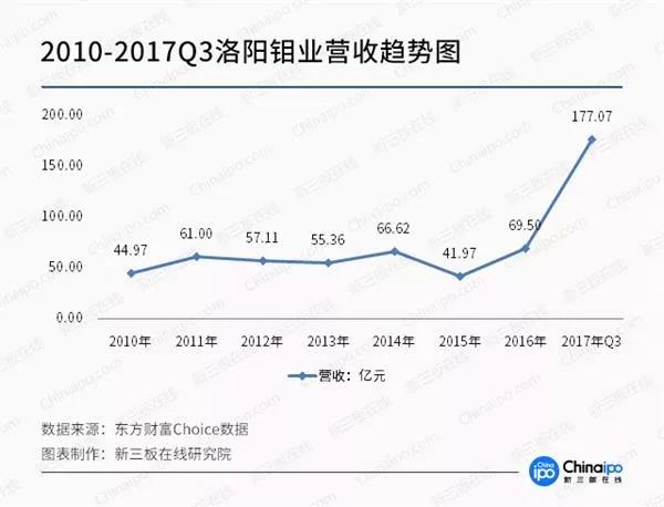 洛陽鉬業(yè)的財報數(shù)據(jù)顯示,2010年洛陽鉬業(yè)全年營收約44.97億元,而截至2017年三季度洛陽鉬業(yè)的營收已經(jīng)達到177億元,2017全年突破220億元應無懸念??瓷先?年營收增長近4倍,成績相當優(yōu)秀,但仔細扒開研究,就能發(fā)現(xiàn)業(yè)績真正的拐點是在今年年初,影響業(yè)績大幅提升一方面來自于收購剛果金的鈷礦,另一方面與鈷價爆發(fā)也有直接的關系。所以雙因素的推動下,我們看到,2017年的業(yè)績翻倍上漲。
