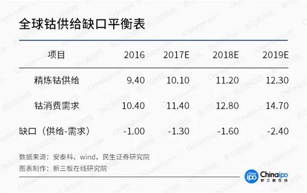 從產(chǎn)業(yè)鏈角度看,短期內(nèi)鈷礦擴產(chǎn)的能力不及下游需求的爆發(fā)力強。首先,在鈷礦方面被少數(shù)巨頭掌握,對下游的議價能力強勁。但是下游的需求擴張已經(jīng)來臨,這一快一慢對比之下,鈷的供需極度不平衡。根據(jù)民生證券研究院的預測,2017至2019年的供給缺口分別將達1.3萬噸、1.6萬噸和2.4萬噸。
