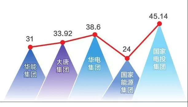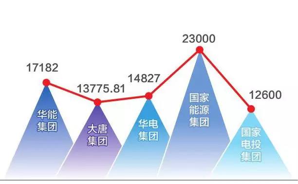 截至2017年年底,國家能源集團(tuán)裝機(jī)容量23000萬千瓦,居新五大發(fā)電之首(火電裝機(jī)17500萬千瓦,占全國15.8%;水電裝機(jī)1849萬千瓦;風(fēng)電裝機(jī)3589萬千瓦,居世界第一,占全國21.9%)。華能集團(tuán)境內(nèi)外全資及控股電廠裝機(jī)同比增長3.8%,達(dá)到17182萬千瓦,居次席。分列第三、第四的華電集團(tuán)、大唐集團(tuán)裝機(jī)容量分別為14827萬千瓦、13775.81萬千瓦。國家電投集團(tuán)電力總裝機(jī)規(guī)模達(dá)12600萬千瓦。