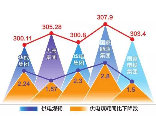 在本次對(duì)比的5家企業(yè)中,華能集團(tuán)供電煤耗最低,完成300.11克/千瓦時(shí),同比下降2.24克/千瓦時(shí)。國家能源集團(tuán)供電煤耗同比降低2.8克/千瓦時(shí),下降數(shù)量最為明顯,完成307.9克/千瓦時(shí)。華電集團(tuán)供電煤耗完成300.8克/千瓦時(shí),同比減少2.3克/千瓦時(shí)。國家電投集團(tuán)供電煤耗同比下降1.5克/千瓦時(shí),完成303.4克/千瓦時(shí)。大唐集團(tuán)供電煤耗完成305.28克/千瓦時(shí),同比降低1.57克/千瓦時(shí)。