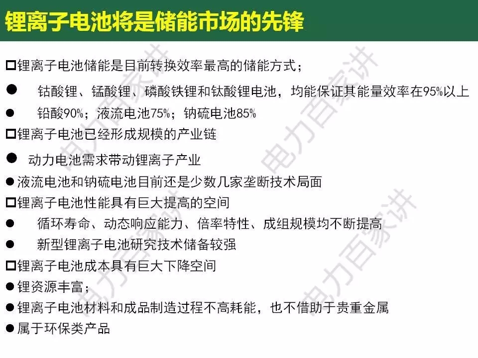 惠東在這份報告中指出,鋰電子電池化學儲能技術是過去5年發(fā)展最快的儲能技術,電動汽車市場刺激了人力、財力在鋰電池領域的投入,不管從規(guī)模上,還是技術儲備上,惠東認為它將有望成為儲能市場化過程中的技術先鋒。