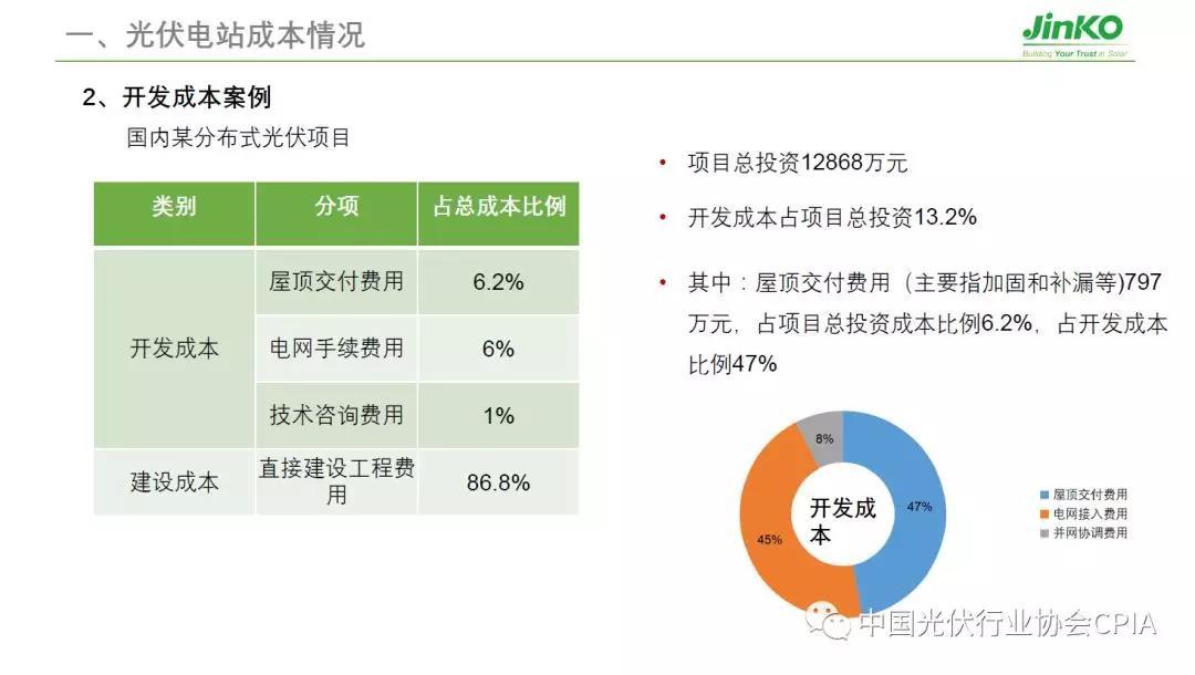 中國儲能網(wǎng)訊:“光伏行業(yè)2018年上半年發(fā)展回顧與下半年形勢展望研討會”上,晶科電力科技股份有限公司高級總監(jiān)李帥 作光伏電站開發(fā)成本分析的報告。