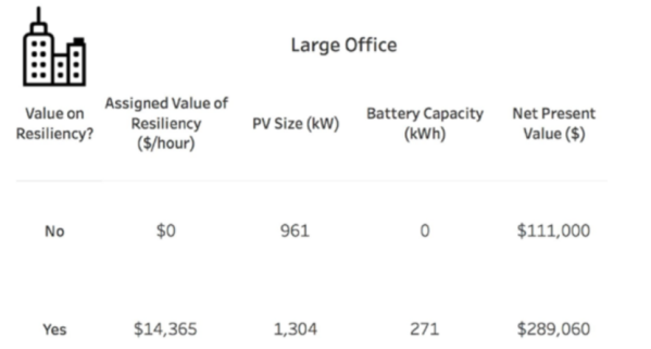 Based on in-depth modeling of various building types, putting a real value on the ability of PV and storage to prevent losses during outages results in the cost-effective design of larger solar+storage systems. In some cases, putting a value on resilience can even make solar+storage projects feasible where the technologies would not be economically viable otherwise.