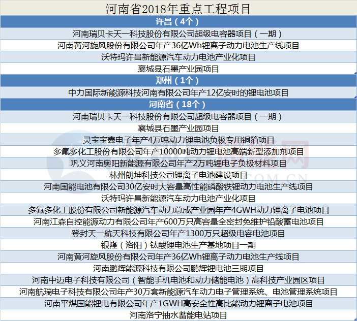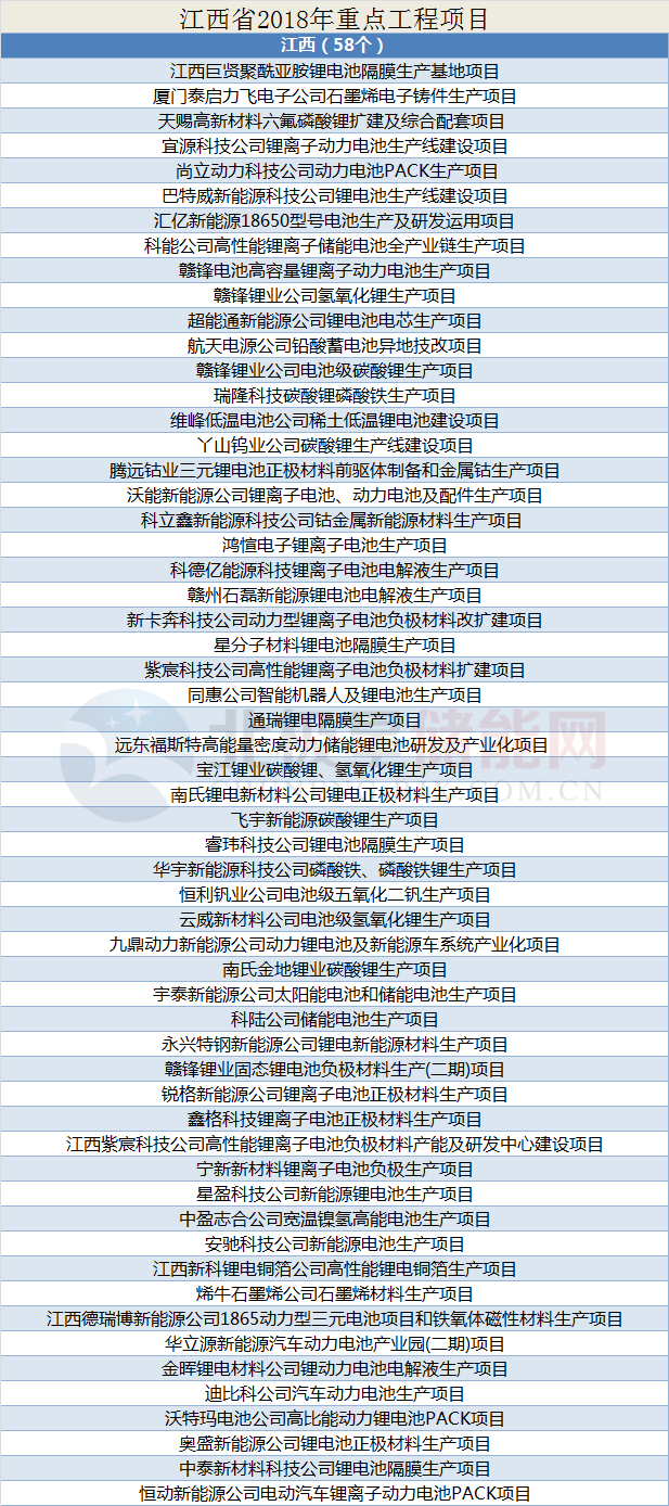 中國儲能網(wǎng)訊:據(jù)悉,最近一段時間多個省份陸續(xù)公布《2018年重點工程項目建設(shè)名單》,截止小編發(fā)稿前,公布省級建設(shè)項目名單的有:山東、江蘇、甘肅、湖北、廣東、江西、山西、河北、河南、福建、貴州共11個省份,小編為大家整理了各省份重點項目名單中涉及儲能的項目,共涉及儲能項目202個。