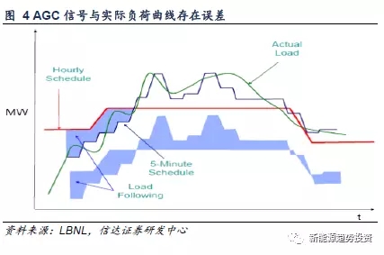 對于三次調(diào)頻來說,其主要應用與在較長時間間隔下提交和調(diào)度資源,通常也被稱為實時平衡或者負荷跟蹤。我們以加州為例,CAISO通過每15min指派短期啟動和快速啟動機組以及每5min給機組發(fā)送調(diào)度指令來進行負荷跟蹤,而對于二次調(diào)頻,每隔4s,AGC系統(tǒng)就會監(jiān)視ACE偏差并給提供調(diào)頻輔助服務的機組發(fā)送調(diào)度信號,因此在此我們主要討論儲能在二次調(diào)頻中的應用及其效果。