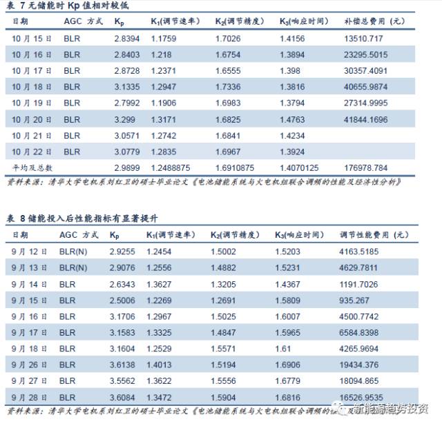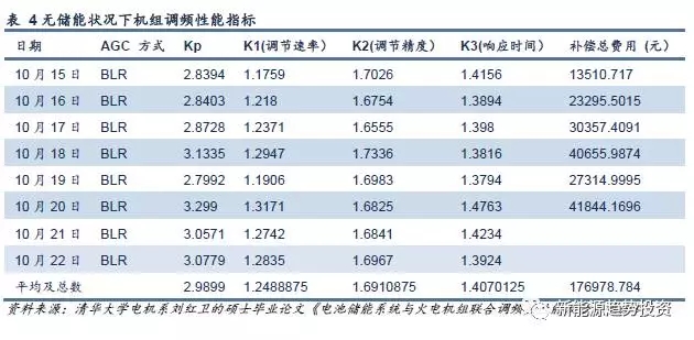 由于目前國內(nèi)對儲能調(diào)頻效果及經(jīng)濟性的測算缺乏統(tǒng)一標準,因此根據(jù)清華大學電機系劉紅衛(wèi)的碩士畢業(yè)論文《電池儲能系統(tǒng)與火電機組聯(lián)合調(diào)頻的性能及經(jīng)濟性分析》中石景山的項目數(shù)據(jù),我們得到儲能和火電機組聯(lián)合調(diào)頻的效果及經(jīng)濟性相關評價。
