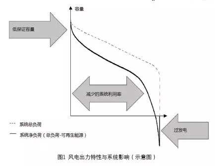 波動(dòng)性可再生能源(主要是風(fēng)電與光伏)進(jìn)入電力系統(tǒng),具有三個(gè)明顯的系統(tǒng)效應(yīng)(必須指出,這不涉及好還是不好的價(jià)值判斷),程度隨著份額、系統(tǒng)特性的不同而不同。這包括:較低的保證容量;減少的總體系統(tǒng)利用率;過(guò)發(fā)電(可再生容量出力超過(guò)總負(fù)荷)(見(jiàn)圖1)?;谙到y(tǒng)成本最小化的目標(biāo),隨著可再生能源電力的日益增多,未來(lái)的系統(tǒng)無(wú)疑應(yīng)該是一個(gè)更少基荷、更頻繁爬坡、更多備用的系統(tǒng)。這對(duì)未來(lái)的發(fā)電與電網(wǎng)投資具有很強(qiáng)的含義。除了可再生能源之外的其他電源形式,將只會(huì)擁有越來(lái)越低的利用水平,以及在更短周期與更少機(jī)會(huì)內(nèi)回收固定投資的機(jī)會(huì),電力系統(tǒng)需要日益成為一個(gè)輕資產(chǎn)的系統(tǒng)。傳統(tǒng)煤電機(jī)組與輸電設(shè)施,“大”本身都不再是優(yōu)點(diǎn),而是影響系統(tǒng)靈活性的巨大缺點(diǎn)。